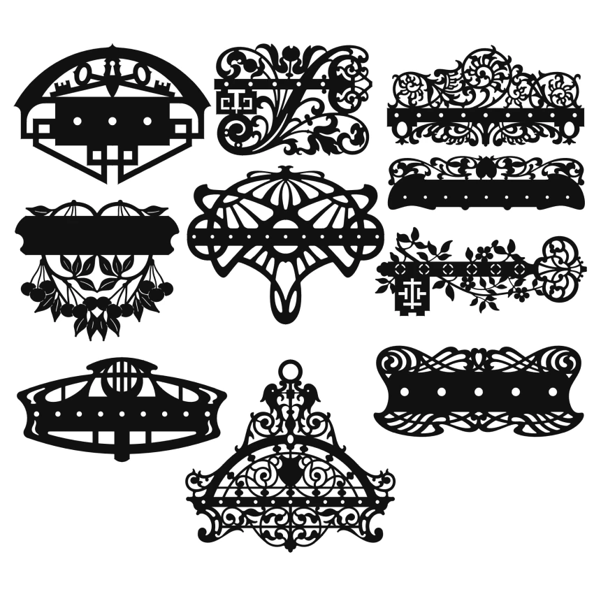 Šabloni su nacrtani na osnovu fotografija iz kataloga starog više od 100 godina. Katalog je pripadao američkom preduzeću koje se nekad bavilo proizvodnjom pokućstva od drveta. Većina pokućstva koje su proizvodili je bilo napravljeno od pločastog drvenog materijala i ukrašeno isečenim šarama. Prednost ovakvih predmeta je što pored svoje primarne namene imaju i dekorativnu funkciju.