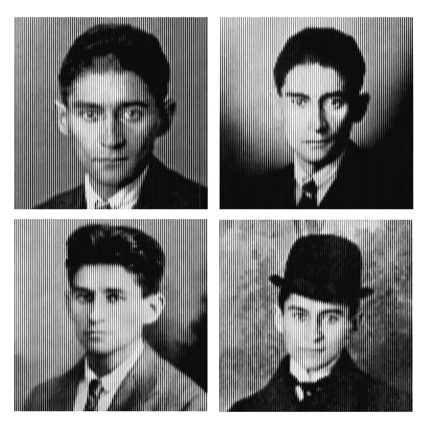 Digitalni portreti pisca Franca Kafke nacrtani pomoću paralelnih linija perom, odnosno paralelnih linija koje menjaju debljinu. Unutar datoteka se nalaze 4 različite kafkine ilustracije.