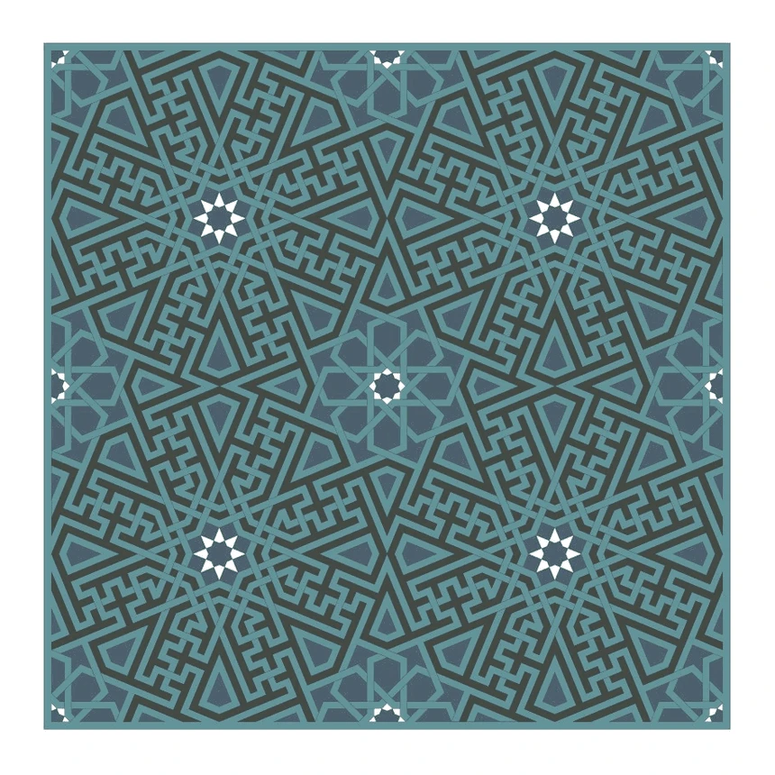 Ova prelepa geometrijska šara spada u preplet šare i tipična je za srednjovekovnu islamsku umetnost tj. umetnost Arapa, Mavara, Persijanaca...