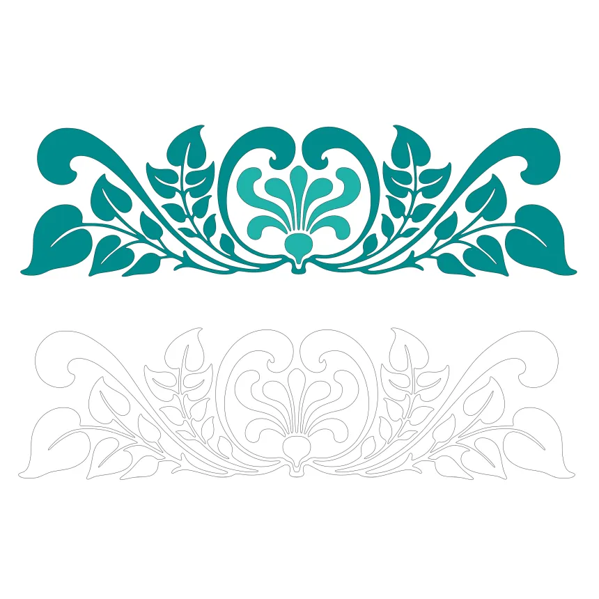 Ornament se sastoji samo od 9 zatvorenih krivih i možete ga uređivati u bilo kom 2D CAD ili softveru za vektorsku grafiku. Zbog svoje jednostavnosti i prirodnih oblika, pogodan je za različite vrste tematika i zanatskih tehnika ukrašavanja.