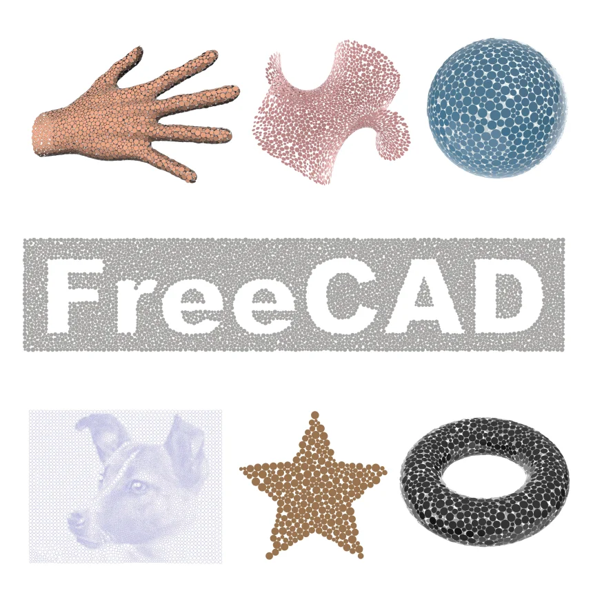Drugim rečima svih 7 ponuđenih geometrijskih modela je napravljeno proceduralnim modeliranjem. Eneper površ, lopta i torus su primeri pakovanja kružnica po površi, Lajka je primer pakovanja kružnica po bitmap slici, ženska ruka po poligonalnoj mreži, zveda unutar 2D konture, a FreeCAD natpis oko 2D kontura.