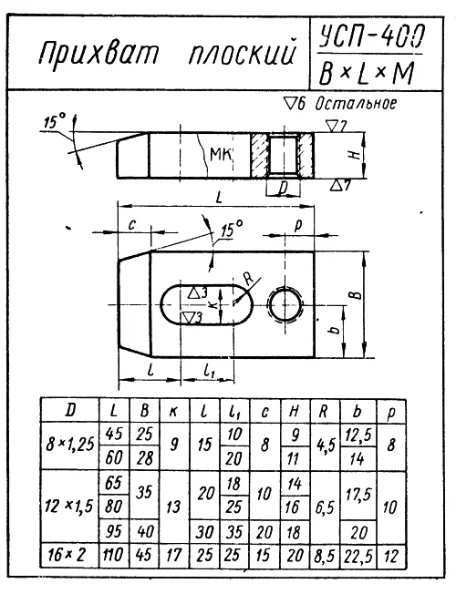 Kod ove vrste delova se ne pravi tehnički crtež za svaki deo već se on predstavi na crtežu kao "Familija delova". Famillije delova se na crtežima prikazuju na isti način kao obični delovi, ali im se mere daju u vidu tabelarnog kotiranja. Na sledećej slici možete videti kako u katalogu modularnog pribora izgleda originalni tehnički crtež familije ravne stezne šape.