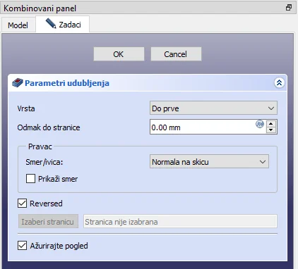 Nemojte se plašiti ove suvoparne priče o kombinovanom panelu koja sledi jer je rad u njemu u praksi veoma lak i intuitivan, i ne razlikuje se od rada u sličnim komercijalnim 3D CAD programima.