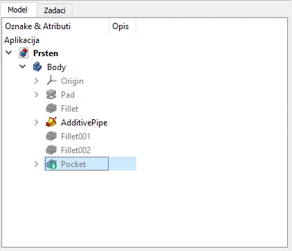 Stablo dokumenta (Tree view) je strukturalni prikaz svih objekata koji se nalaze unutar FreeCAD dokumenta t.j sve što ste tokom rada definisali. U Stablu dokumenta se nalazi hijerarhijski prikaz strukture FreeCAD dokumenta t.j. svih objekata koje ste napravili u trenutno otvorenim dokumentima. Sve što se nalazi u Stablu dokumenta vizuelno je prikazano u 3D pogledu. Više o stablu dokumenta možete pročitati na strani Stablo dokumenta. Ako ne volite teoriju, za normalan rad u FreeCAD-u je dovoljno da kroz uputstva u tutorijale upoznate njegovu praktičnu upotrebu.