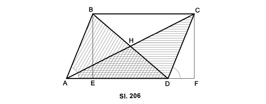197. Teorema. U svakom paralelogramu zbir kvadrata dijagonala jednak je zbiru kvadrata strana (sl. 206).