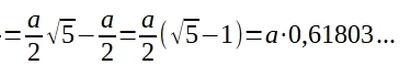 tj. traženi deo x1. Kad se AE prenese na AB (od A do G), dobijamo tačku G koja deli datu duž po pravilu zlatnog preseka.