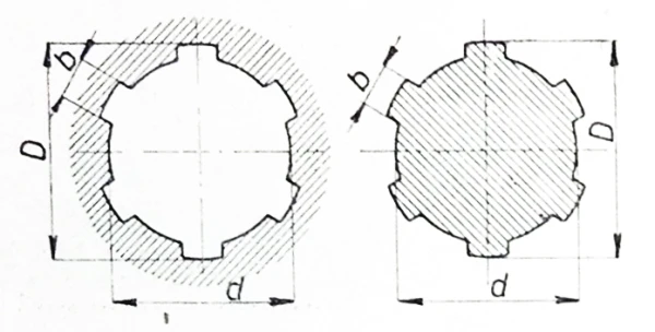 U slučaju ožljebljenih vratila, sl. 72, izradi se glodalom veći broj (420) uzdužnih žljebova bez nagiba. Za ispupčenja, koja se dobiju na ovaj način, predvidi se u glavčini odgovarajući broj žljebova.
