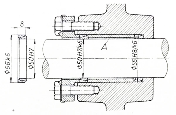 Na taj način izbegnuta je mogućnost korozije, koja je inače česti uzrok preloma vratila. Uzdužno osiguranje prstenastih klinova postiže se pomoću čaura A za održavanje rastojanja.