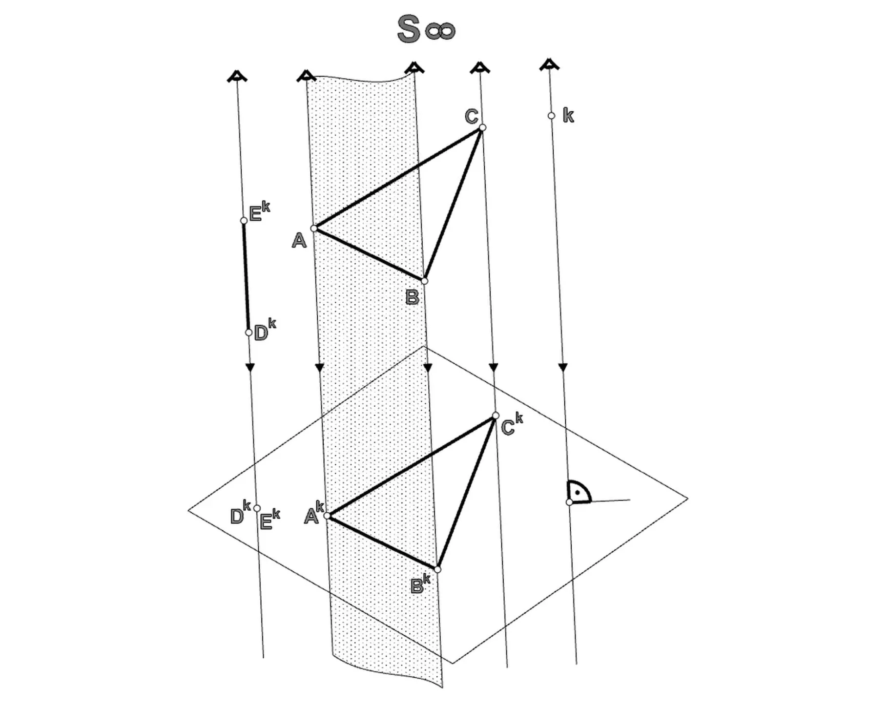 Tada se ugao između njih vidi u pravoj veličini. Dakle, presečnica dveju zračnih površi koje imaju isti pravac izvodnica vidi se kao tačka (zračno) kada se ove površine vide kao linije (zračno).