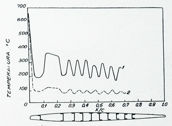 Raspored temperatura na krilu sa mnogo ramenjača u nekom trenutku pri letu sa velikom brzinom prikazan je na slici 4 (prema podacima laboratorije NACA). Temperatura obično dostiže maksimum na prednjoj ivici aeroprofila, a na raspored temperature po tetivi utiče prisustvo zidova. Naprezanja zavise od rasporeda temperature u konstrukciji, koji se u toku vremena brzo menja, dok se ne postigne termička ravnoteža. Prema tome raspored naprezanja takođe se menja u toku vremena. Termička naprezanja koja se na taj način stvaraju treba sabrati sa naprezanjima koja se javljaju iz drugih razloga. U oblozi zagrejanog krila obično se javljaju termička naprezanja na pritisak, koja u nepovoljnim uslovima mogu da dovedu do gubitka stabilnosti obloge, čak i ako ne postoje naprezanja od opterećenja. Takav gubitak stabilnosti narušava opticanje i smanjuje krutost krila, što može da dovede do nepoželjnih deformacija.