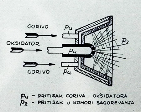 ili, kroz sve otvore rażmeštene u glavi komore raketnog motora (slika 10):
