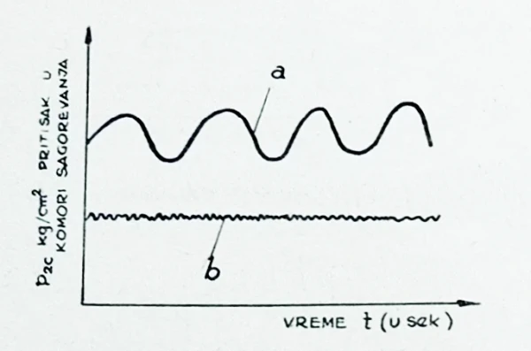 Nesumnjivo da je izloženi dijagram oscilacija pritiska na slici 9 približan, jer ustvari stvorene oscilacije u komori biće blaže, zahvaljujući uticaju zapremine i oblika komore sagorevanja kao i drugih faktora.
