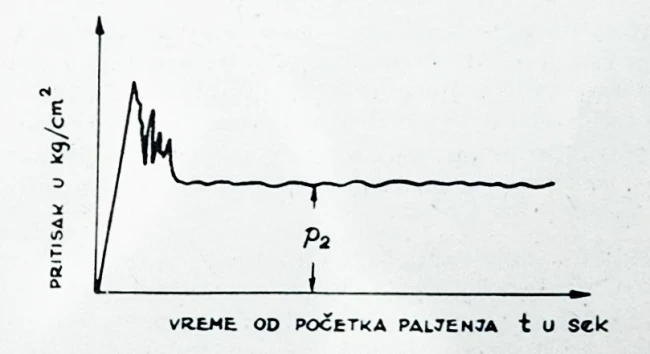 U jednom drugom slučaju, za pritisak sagorevanja u komori 20,5 kg/cm2 i pritisak neutralnog gasa 27,2 kg/cm2 i za proizvoljno izabran pad pritiska u komori na 13,5 kg/cm2, kao i u prvom slučaju, promena pritiska bila bi sledeća:
