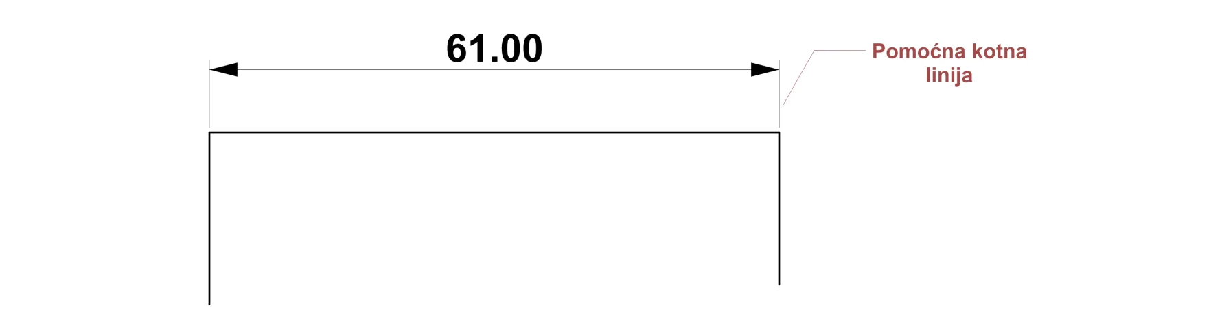 Pomoćne kotne linije izostaju ako je kota unutar konture